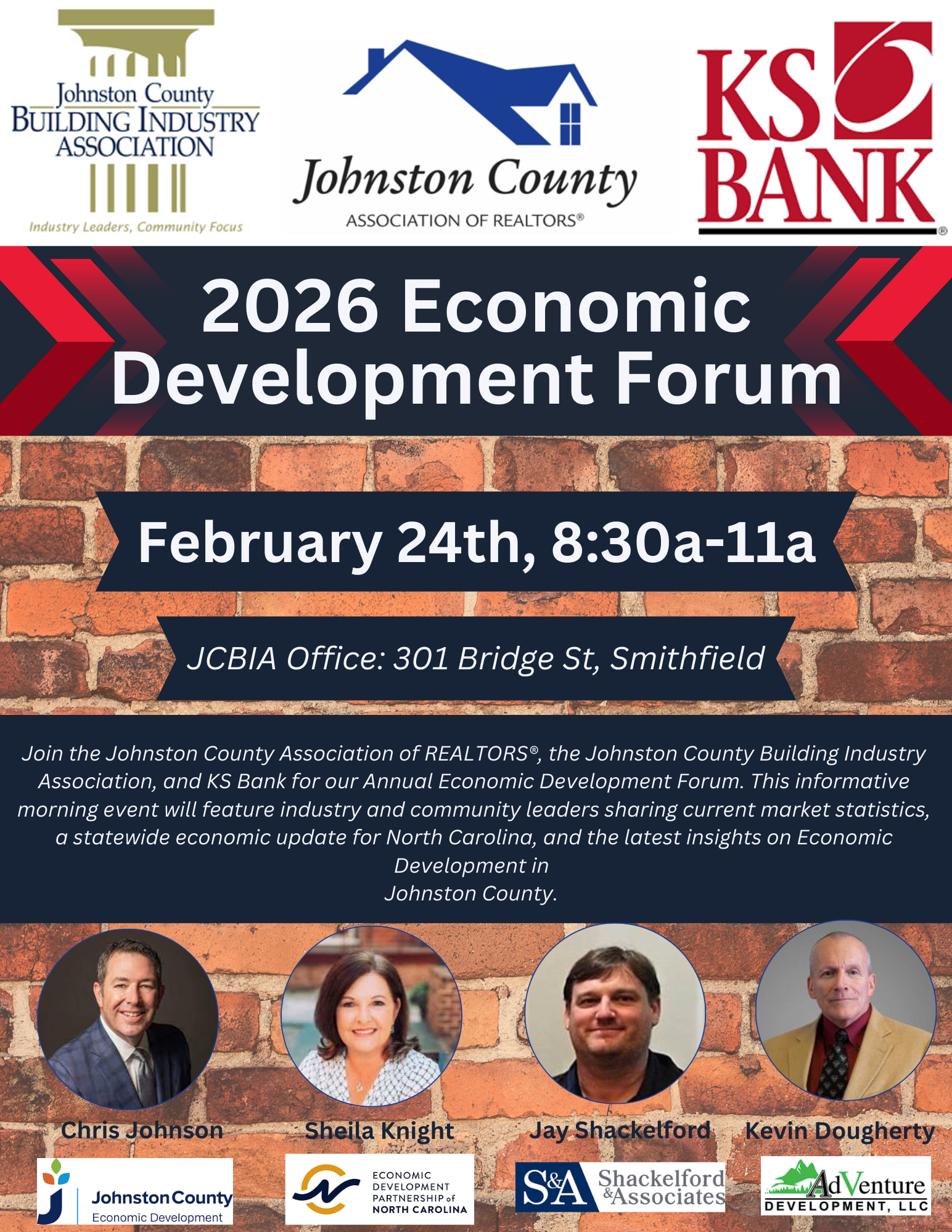 JCAR, JC Building Industry and KS Bank have partnered together for our annual Economic Developmet Forum. No-Show & Cancellation Policy: Registrants who do not attend and fail to cancel at least 48 hours prior to the event will be charged a $20 no-show fee. All cancellations must be submitted no later than 48 hours before the event to avoid this fee.