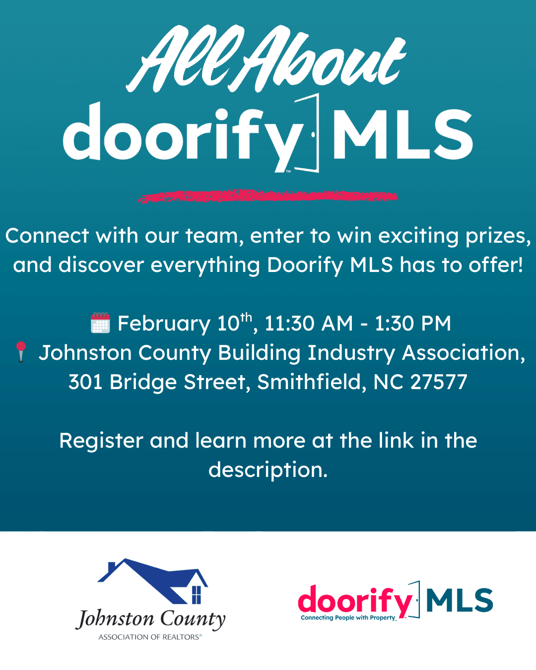 Join us for All About Doorify MLS, an engaging event packed with insights into tools, updates, workflows, and more. You’ll experience an interactive presentation designed to help you get the most out of your MLS — and food will be provided!