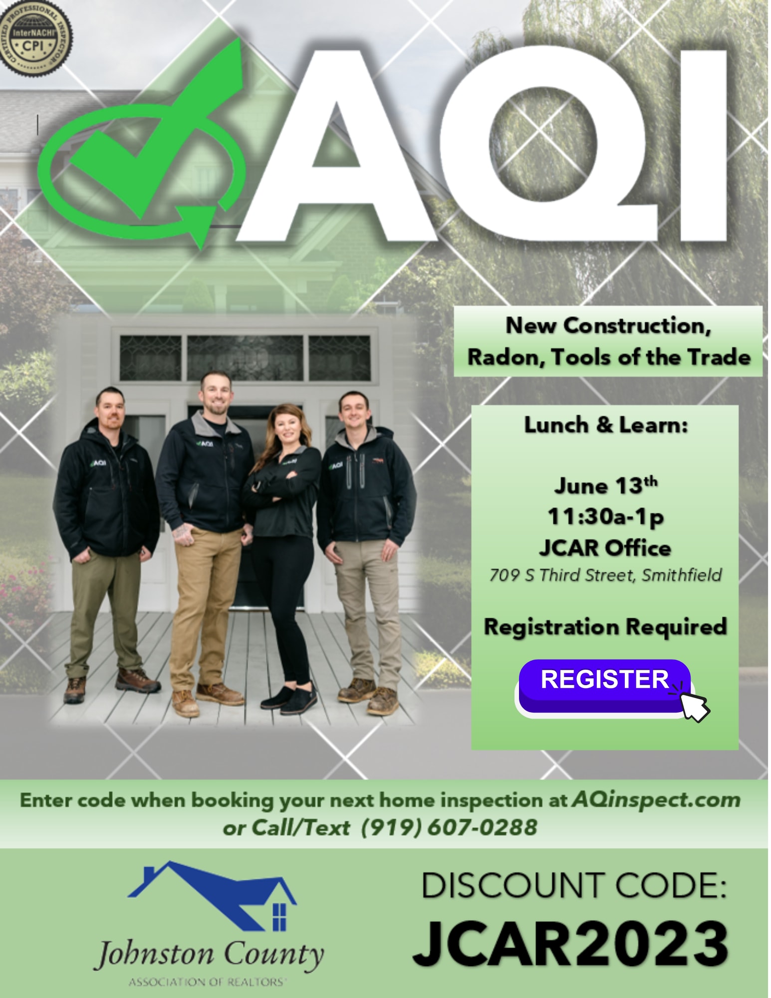 AQI will be discussing New Construction, Radon and Tools of the Trade.